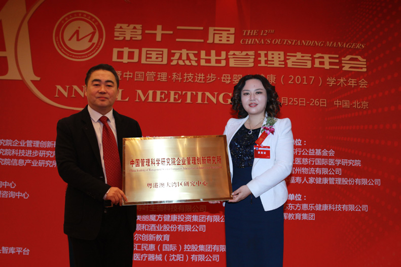 会上中国管理科学研究院创新所所长陈贵向陈琼董事长授予了“ 粤港澳大湾区研究中心”牌匾并任命陈琼董事长为“粤港澳大湾区研究中心”主任,同时向其颁发了“2017年度中国十大管理创新卓越人物”荣誉证书,并向深圳美丽魔方健康投资集团颁发了“2017年度中国十大管理创新突出贡献单位”荣誉证书。