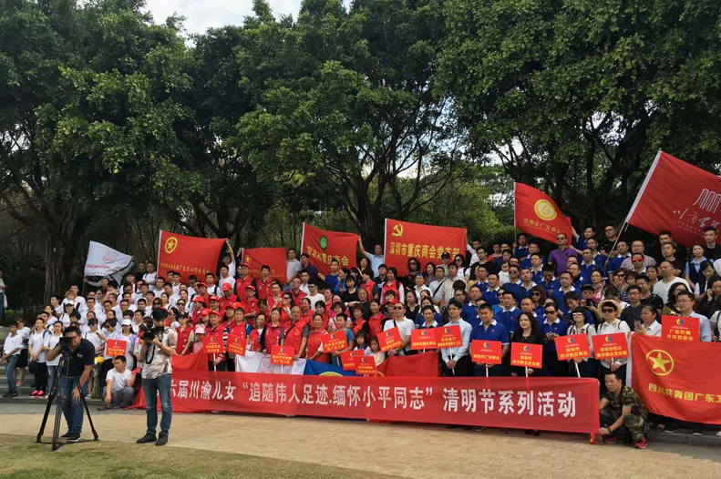 4月5日,由深圳市机关党委、深圳市四川商会、深圳市四川商会党支部、深圳市重庆商会、深圳市重庆商会党支部、川商学院、共青团重庆市委驻广东省工作委员会、共青团四川省委驻广东省工作委员会、深圳市川渝义工联合会、深圳市义工联合会党委、共青团营山县委驻广东工委、共青团重庆市委驻广东惠州新圩总支部、广东巴蜀文化促进会、广东省巴蜀志愿者联合会、广东省四川绵阳商会、深圳市广安商会、深圳美丽魔方健康投资集团联合发起主办的第六届“追随伟人足迹·缅怀小平同志”大型缅怀活动在深圳市莲花山公园隆重举行。来自川渝驻粤机构、商协会的党员、商会会员、群众、青年及川渝乡友、热心市民等数四百余人参加了本次活动。