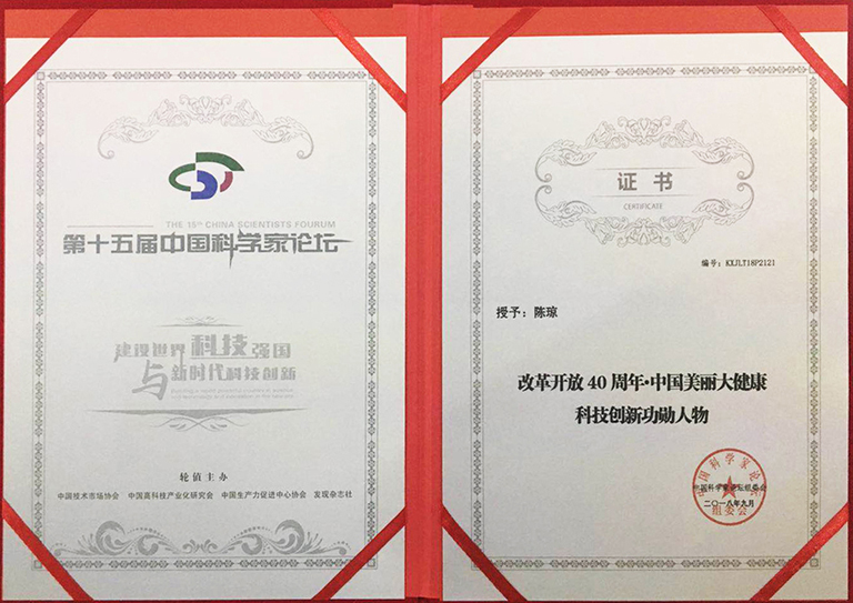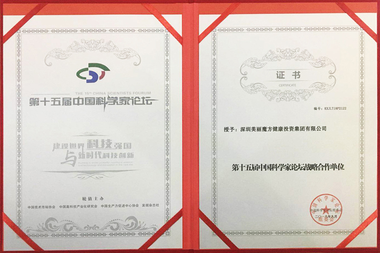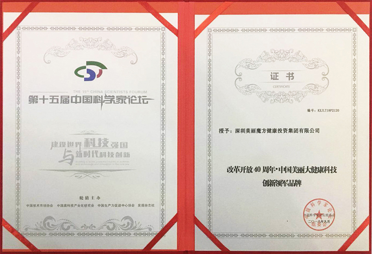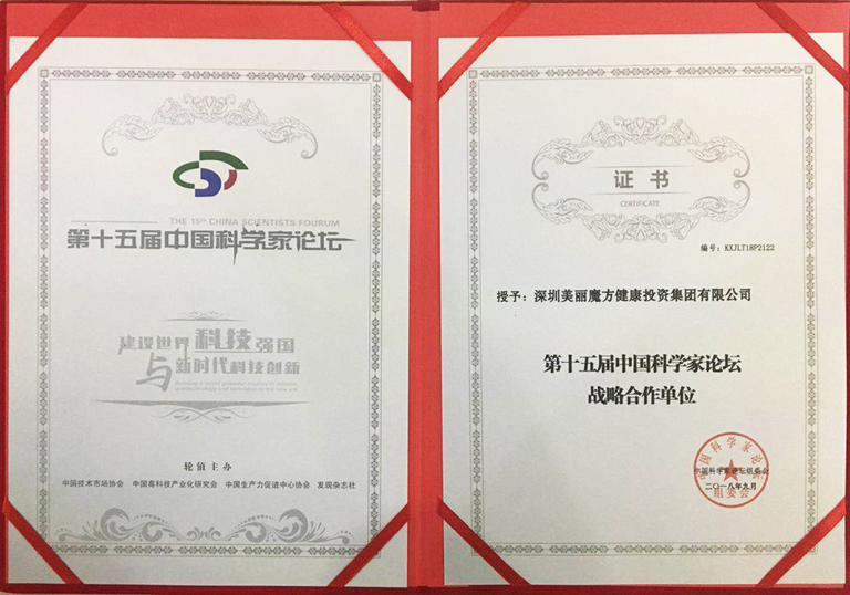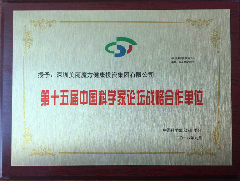 会上,有关领导及众多专家学者对深圳美丽魔方健康投资集团的发展表示了高度的关注,详细询问了集团的发展历程和现状,对公司在产品创新、科技运用上的一系列重大成果表示了充分的肯定。中管院创新所所长陈贵代表论坛主办方向陈琼董事长颁发了” 中国美丽大健康科技创新功勋人物”奖牌及证书、中管院创新所书记赵先贵代表论坛主办方向深圳美丽魔方健康投资集团颁发了“第十五届中国科学家论坛战略合作单位”及“改革开放40周年•中国美丽大健康科技创新领军品牌”荣誉证书及奖牌,他们勉励公司再接再厉,勇创辉煌。