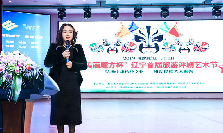 为这次艺术节提供了最大支持的深圳美丽魔方投资集团董事长一行专程来鞍为艺术节揭幕并颁奖。中管院创新所粤港澳大湾区中心主任兼美丽魔方健康投资集团董事长陈琼表示,美丽魔方是一家致力于美丽大健康全产业链的集团公司。去年起美丽魔方集团走进鞍山,逐步将先进的健康理念带到鞍山,并与鞍山市老年文体组织联合会合作,发挥各自优势,更多地为鞍山老年健康事业发展提供新理念,筹划新项目。目前,鞍山上下一心,“四产融合一体化”发展生机勃勃,在这样的大环境下,美丽魔方集团能够助力此次评剧艺术节,无疑更拓宽了老年健康产业发展的思路,更好地发挥了“四产融合一体化”效应。她非常感动这么多热爱艺术的人来参加此次评剧节,感恩如此多有志于传统文化发展的艺术工作者的默默付出,这让她更加坚定,未来会继续大力支持优秀传统文化的发展。
