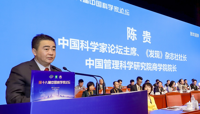 中国科学家论坛主席、中国管理科学研究院商学院院长、《发现》杂志社社长陈贵在致辞中提到,2021年是“十四五”开局之年,也是中国共产党建党100周年,也是加快形成国内大循环为主体、国内国际双循环相互促进的新发展格局的关键之年,为全面学习贯彻十九届五中全会精神,中国科学家论坛自创办以来,首次在上半年举行,就是希望与国家大政方针保持同步,为建党100周年献礼。陈贵介绍到,在三天的正式会议期间,杜祥琬、樊代明、尹伟伦、吴澄、倪维斗、吴宏鑫、吴丰昌、匡廷云、侯立安、刘大响等二十多位两院院士以及其他领域的专家学者在线上和线下作了精彩学术报告,还有270多位企业家也在会上作了创新成果经验分享。