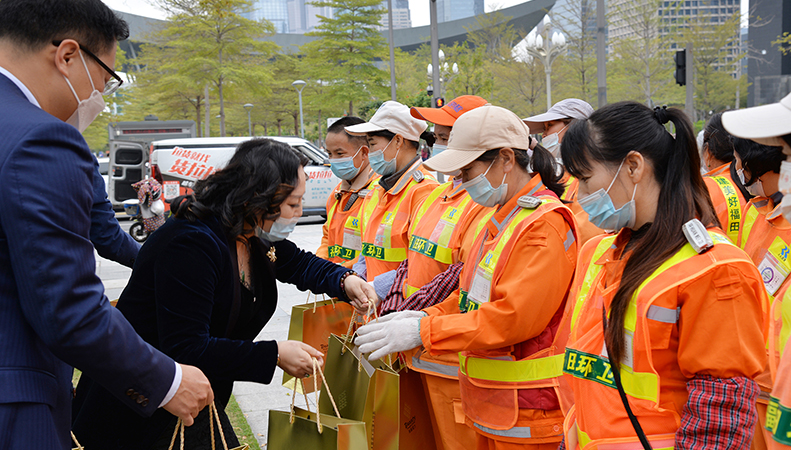 据了解,不仅是对抗疫一线的支援,早在今年春节前夕,美丽魔方集团了解到许多深圳环卫工人放弃回家团圆,坚守岗位,继续为城市清洁,就马上发起“点赞建设者,关爱暖人心”迎春慰问活动,为环卫工人捐赠爱心物资,感恩他们对城市干净整洁的环境作出的贡献。