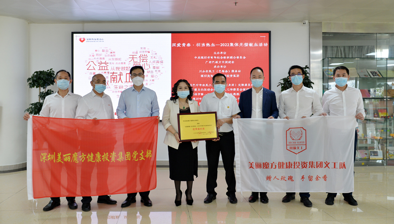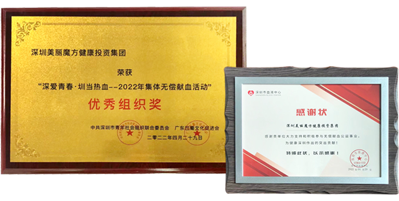活动中,深圳市血液中心服务科蓝欲晓主任、张艳艳主任代表深圳血液中心对本次活动进行赞美和嘉许,并向深圳美丽魔方健康投资集团颁发了感谢证及奖牌,同时也向各单位及个人颁发了奖牌及血液捐证书。