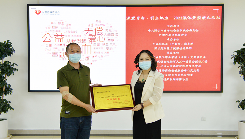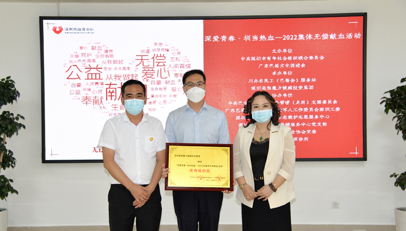 “五一”来临之际,为了帮肋重病患者,助力深圳血库中心获得更多血液,由深圳市青年社会组织联合党委、广东巴蜀文化促进会联合主办,川办农民工(巴蜀会)服务站、深圳美丽魔方健康投资集团承办的“深爱青春·圳当热血”——集体无偿献血活动于4月29日和30日下午,在深圳市血液中心顺利完成。